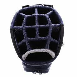 The 14-way top offers ample room for clubs, with 8 total pockets for accessories, valuables, garments, cool drinks and more. The innovative non-stadium top allows wedges to sit flush, eliminating hang. A glove attachment and pen holder add further convenience, with front facing pockets for easy access while navigating the course.