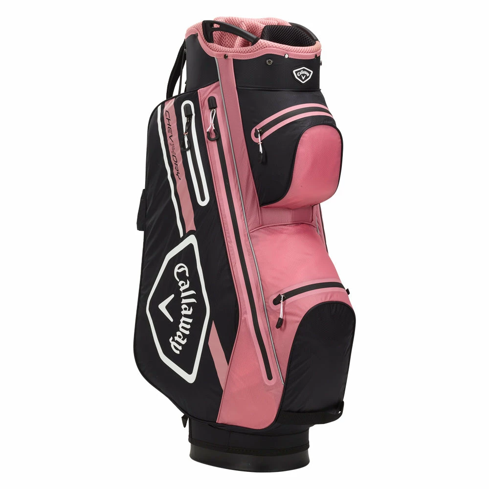 Designed to fulfil the needs of every golfer, the CallawayChev Dry 14 Golf Cart Bag is a fully waterproof, lightweight trolley bag with plenty of room for all your golfing equipment. It features a new 14-way graphite divider system with moulded easy grab handles for easy lifting and lowering. Offering great club organisation the bag also features thetrolley friendly base allowing the bag to fit perfectly on most pull and electric trolleys.