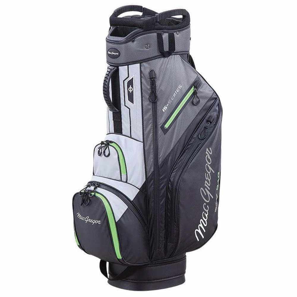 Boasting a host of features in a lightweight design, the 15-Series Water Resistant 10″ Cart bag is the ultimate MacGregor cart bag utilising water resistant zippers and fabric to offer excellent protection from short showers. A 10″ top coupled with 15-way divider allows for easy club access while strategically placed pockets provide plenty of storage for all your golf accessories and gear.