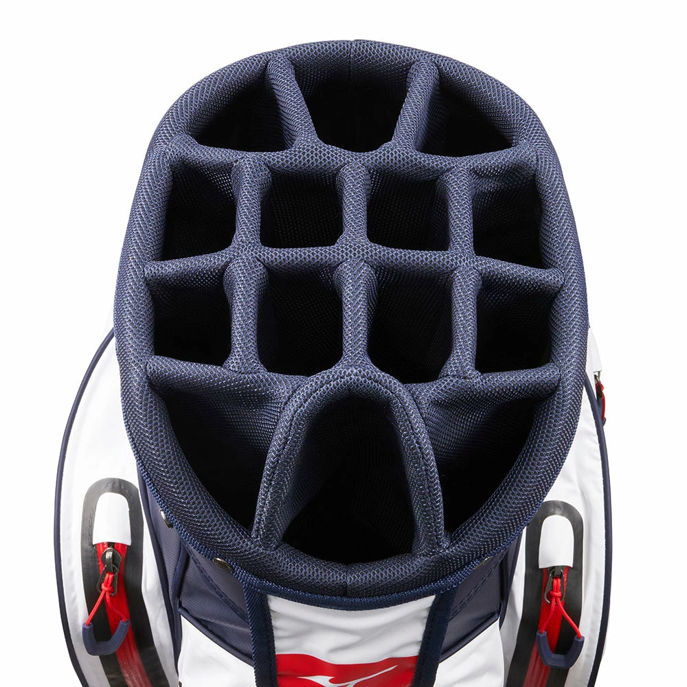 The BR-DRI Cart Bag from Mizuno is manufactured using seamless technology, guaranteeing a Fully Waterproof finish to protect all your items and valuables when out on the course. Featuring 7 spacious pockets, the BR-DRI Cart Bag provides ample space β allowing golfers to carry everything they need when playing, regardless of the weather.